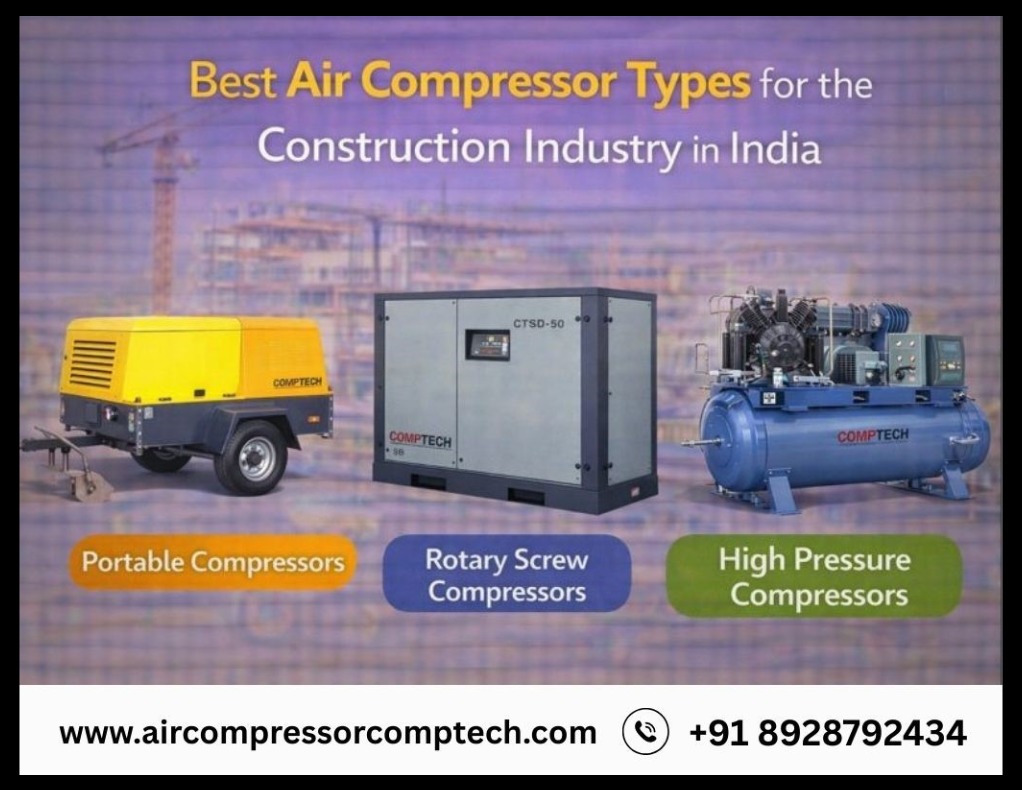 Comptech air compressors are designed for Indian construction conditions, offering strong build, fuel efficiency, and easy maintenance.