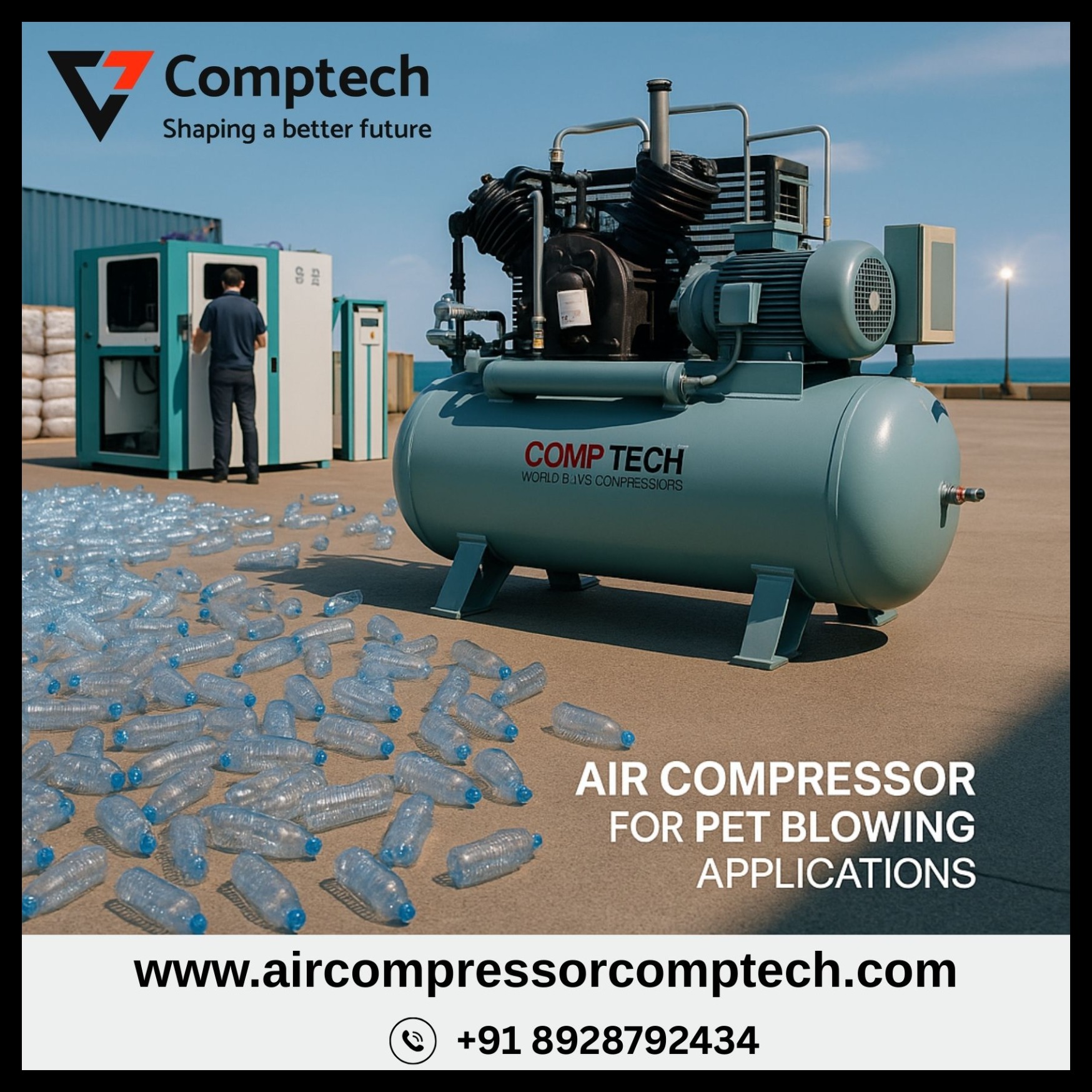 Whether you run a PET bottle plant or a PET jar blowing unit, Comptech Compressor offers the strength, reliability, and advanced features needed to keep your production smooth. That’s why Comptech is considered India’s most dependable compressor brand for PET manufacturing industries.