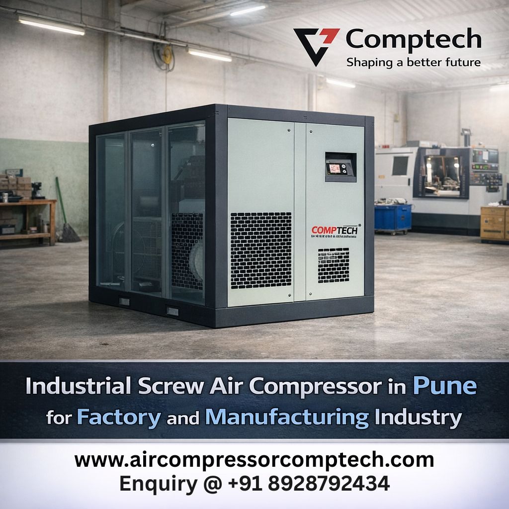 Comptech Compressors supplies industrial screw air compressors in mejor Manufactoring Industries at Pune, Bhosari, Chinchwad, Pimpri, Talegaon, Chakan, Ranjangaon, Hinjewadi, Wakad and Baner for factory, engineering and manufacturing industries.