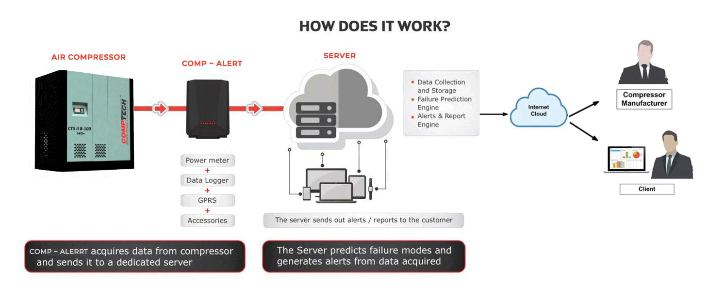 Comptech Air compressor industry 4.0 is based on latest technology, a highly customized management system. The air compressor sold by the air compressor manufacturer or agent is managed by the system from the customer to the equipment. There are cores such as customer management, contract management, fault warning/alarm, remote data monitoring, remote modification parameters, remote switch machine, etc. Features. The function of big data analysis can be realized in the data platform through the data model required by the manufacturer.