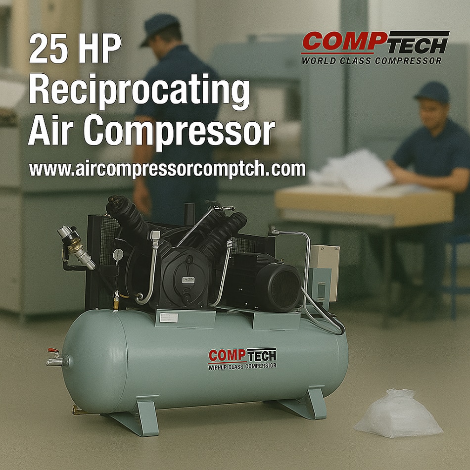 150 HP Pharma Industries Medium Pressure Oil Free 2 Stage Air Compressor • Oil Free Medium Pressure have Forged Crank Shaft & Connecting Rod, Precision Main & Crank Pin Bearings with force feed lubrication have very high load bearing capacity & hardly needs replacements. • Low RPM & rugged cast iron design ideal for heavy duty continuous 24 x 7 operating year after year. • Cylinders constructed with large cast in water jackets & specially designed intercoolers for dimensional stability & better cooling under continuous operation. Features: • 100% oil free air • Vibration free quieter operation • Sustainable design for decades • Service friendly design • Lowest area occupancy • Advance PLC for easy operation • Premium efficiency IE3 motor • Lowest life cycle cost Technical Specifications – 150 HP Oil-Free Reciprocating Air Compressor (Model: CTBO 10-150) Horse Power : 150 HP Maximum Flow Rate : 644 CFM Model Name/Number : CTBO 10-120 Brand : Comptech Air Tank Capacity : 3000 Litre Compressor Technology : Reciprocating Compressor Power Source : AC Three Phase Warranty : 12 Months Cooling Method : Water Cooled Lubrication Style : Oil Free